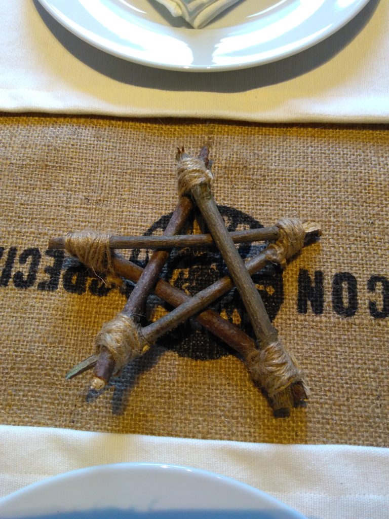 Kept as natural as possible, the star is secured at each point with hessian twine to maintain its rustic appeal.